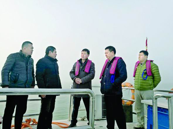 日前,由市有关部门组成的督查组对韩桥乡境内采砂船停靠点和采砂船拆解工作进行督查,并慰问值班看守的执法人员。图为督查现场。■ 通讯员 寇建辉